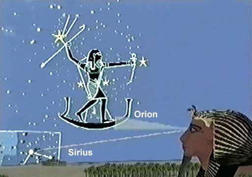 V té době se na horizontu na 90° jižní šířky nacházelo souhvězdí Orion, 9° od meridiánu spojujícího sever a jih. A hvězda Sírius, nejpodstatnější hvězda Egypťanů, jejíž východ oznamoval příchod záplav na Nilu, byla vidět přímo nad horizontem, 14° nalevo od meridiánu.