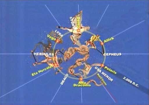 Kněží během vlády faraóna Senefrea, dávno předtím, než byla postavena Velká pyramida, předpověděli, že až bude Alfa Draconis nahrazena Polárkou, bude to znamenat konec jejich civilizace. Papyrus z Neferohu to potvrzuje. Hathořin chrám byl orientován tak, aby kněží mohli zaznamenávat souhvězdí, rozmístěná nad zemskou rotační osou. Těchto 6 polárních souhvězdí ovlivňuje naši planetu daleko významněji než 12 souhvězdí zvěrokruhu. V době, kdy den a noc přestavovaly život a smrt, měla oblast nebe nad pólem, kde byly hvězdy neustále patrné, na rozdíl od těch, co vycházely a zacházely, význam moci temnot, kterou zrušil až východ slunce.
