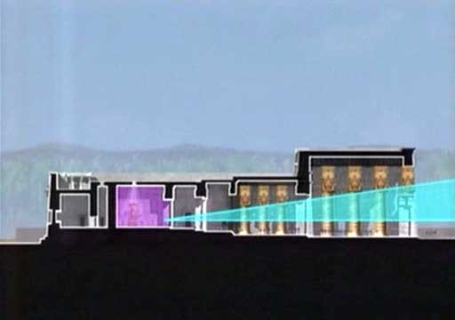 Čím hlouběji se dostáváme do chrámu, tím je tmavší. Stropy se snižují, dveře se zužují, podlaha se zvyšuje, aby ze svatyně mohli všichni, i přes hlavy ostatních účastníků obřadu pozorovat hvězdu Alfu Draconis.
