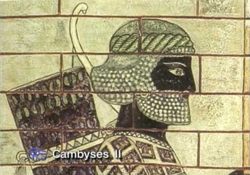Byl to krutý a nemilosrdný tyran, který nenáviděl moudrost, stabilitu a moc faraónů. Chtěl dokázat, že jeho bozi jsou mocnější a v roce 525 před Kristem vtrhl do Egypta. Později zabil Psammetika III., posledního faraóna narozeného legitimně v Egyptě, a také mnoho kněží Školy mystérií Hórova oka. Nechal vyplenit jejich chrámy, spálit jejich papyry a tak zmizela moudra, která na nich byla uložena po generace. Vzdělávání skončilo a egyptská moudrost zmizela spolu s knězi.