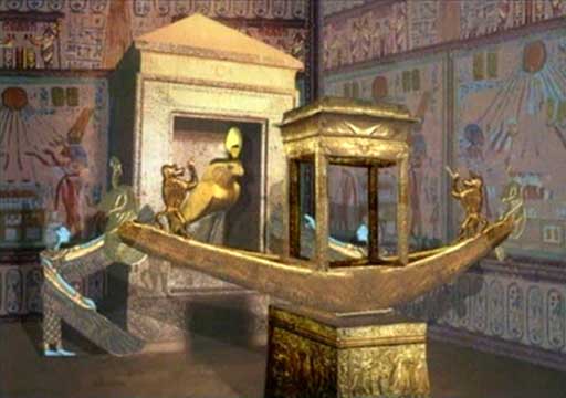 Zde faraón Ptolemaios IV., obklopený platanem, stromem života, dalším symbolem bohyně Hathor, dostává od Hóra palmu se svým osudem, s lekcemi, které se ve svých reinkarnacích musí naučit, aby dosáhl osvícení. Na druhé straně stojí Nekhbet, jež mu předává jeho bezprostřední osud, ten, který zažije v tomto životě jako faraón. Egyptská civilizace byla založena na reinkarnaci jako procesu získání a ověření vesmírných pravd. Duše člověka se vtěluje, aby se poučila z důsledků svých rozhodnutí a pomaloučku se proměňovala ve flexibilní a moudrou bytost, až se nemá čemu více učit a jeho duše je osvícena.
