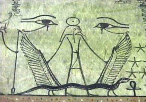 Duchovním vesmírem ho prováděl Hierofant, velekněz Školy mystérií Hórova oka, první sluha boží, zástupce nejvyšších neter. Jeho symbolem byl plaz se dvěma nohama a slunečním diskem na hlavě, který znamenal věčnost, moudrost a fyzickou regeneraci.