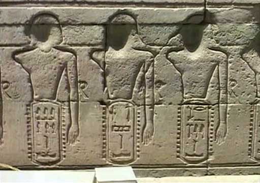 Za svatyněmi a nádrží, za druhou hraniční chodbou, se nachází šest kaplí, po každé straně tři. Uprostřed stálo schodiště, které vedlo na terasu chrámu. Na těchto stěnách se nacházejí nádherné rytiny božstev a faraóna, který vždy zastupuje celé lidstvo.
