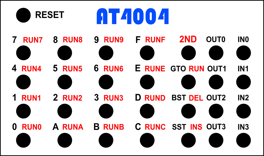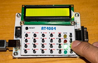 Po zapnutí kitu AT4004 se spustí programovací editační mód (na fotce s položeným štítkem tlačítek pro programování).