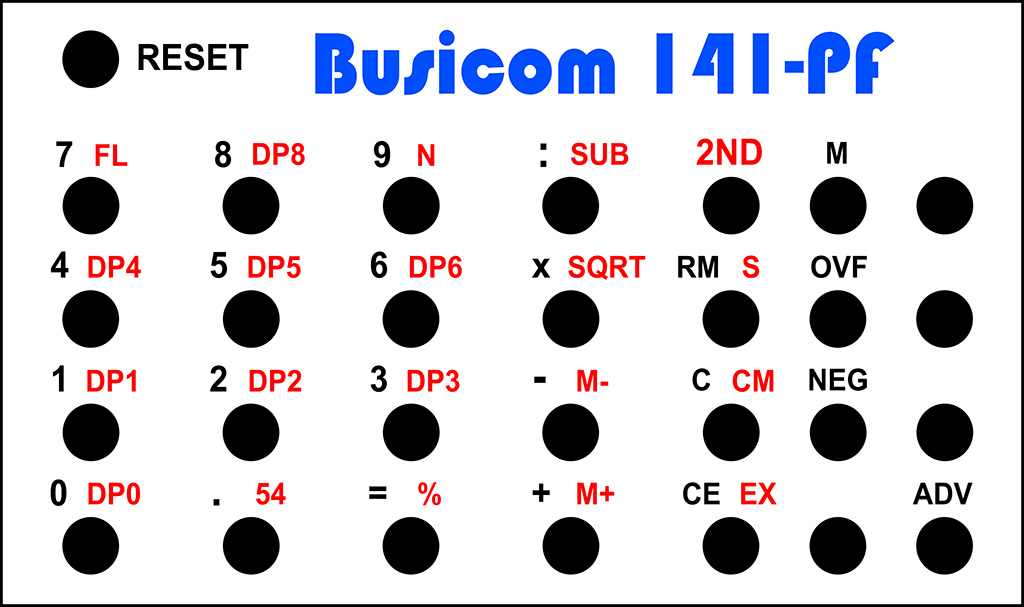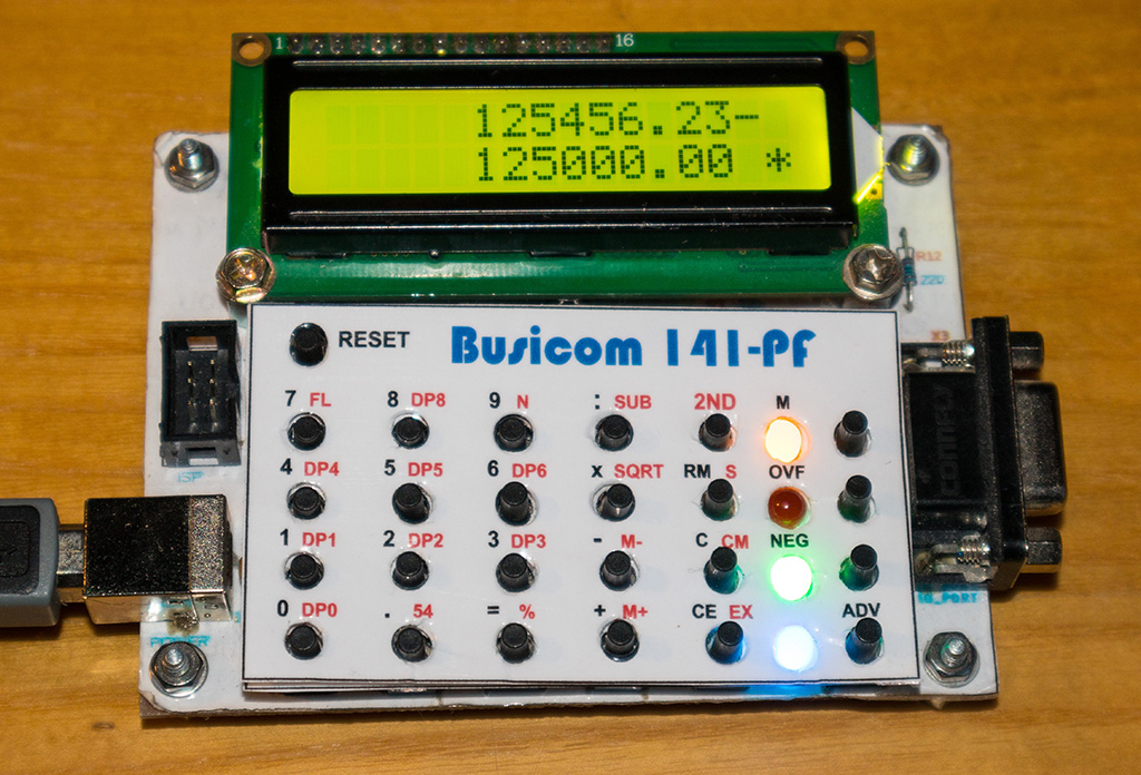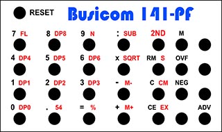 Kalkulátor Busicom 141-PF (UniCom 141P byla jeho OEM verze) vznikl v roce 1971 a byl postaven na procesoru Intel 4004, který firma Intel pro tento účel vyvinula. Procesor pracoval s hodinovou frekvencí 740 kHz a dobou instrukcí 10,8 a 21,6 us. Kalkulátor neobsahoval displej, ale tiskárnu s otočným tiskovým bubnem a se šířkou tisku 18 znaků. Kalkulátor mohl zobrazit až 14 číslic s plovoucí desetinnou tečkou, vnitřně počítal s přesností 16 číslic.