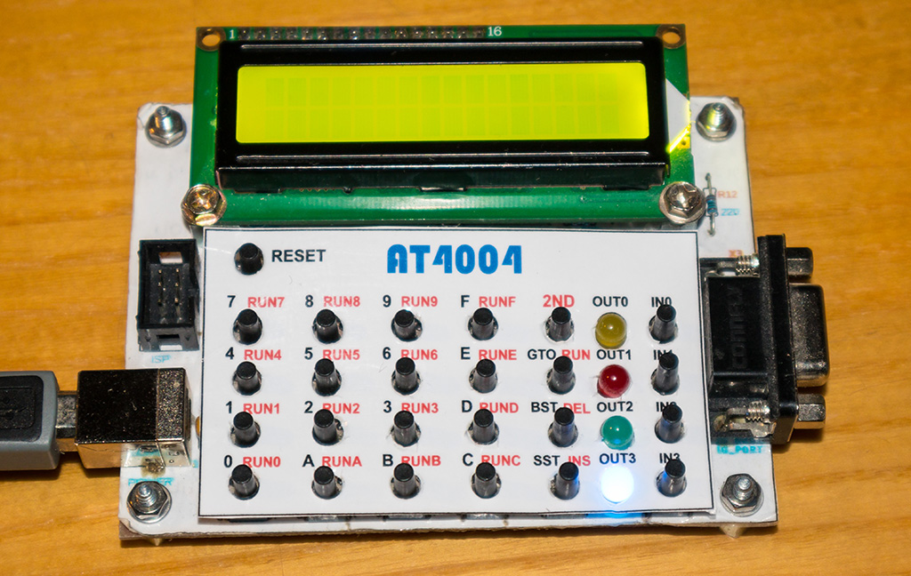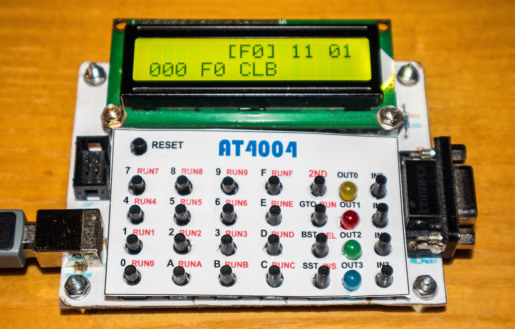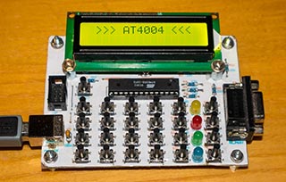 AT4004 je vývojový a výukový kit sloužící k základnímu seznámení s programováním 4-bitového procesoru Intel 4004 a 4040. Procesor je simulován v reálném čase pomocí procesoru ATmega8, časovaného interním oscilátorem 8 MHz. Součástí kitu je emulace kalkulátoru Busicom 141-PF. Emulované programy lze kompilovat buď jako součást vestavěné ROM paměti procesoru ATmega8, nebo editovat přímým zápisem do interní EEPROM paměti ve vestavěném editoru. Z emulovaného programu lze přistupovat ke 4-bitovému vstupnímu a výstupnímu portu, vyvedenému jednak na 9-pinový konektor CANON, a jednak na vestavěná tlačítka a LED diody. Je možné též přistupovat na ostatní tlačítka a znakový LCD displej.