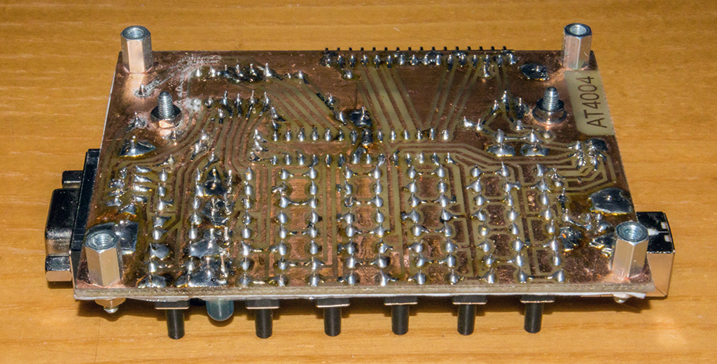 Osazená deska, potisk je na papíře přilepeném na plošném spoji a překrytém izolepou: