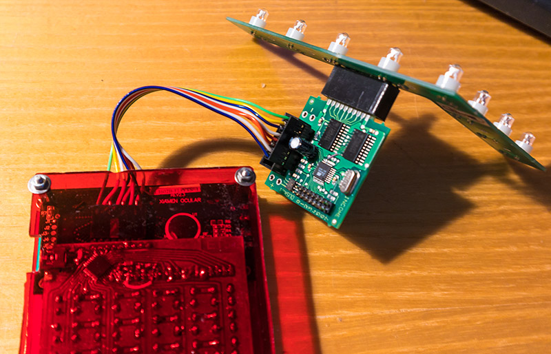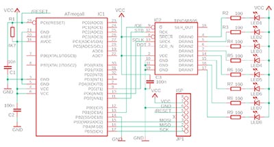 Kalkulátor umožňuje připojení externí periferie přes ISP konektor, s SPI protokolem. Jako příklad je zde uvedeno ovládání LED na efektovém rámu ERAM100 (procesor ATmega8).