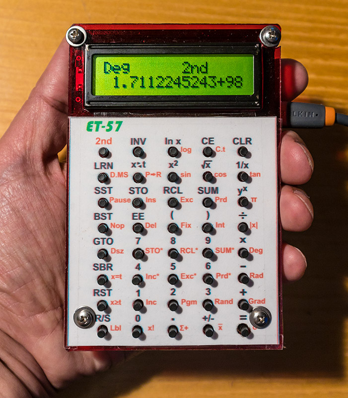 Kalkulátor ET-57 vznikl jako snaha vměstnat do 8 KB paměti procesoru ATmega8 plně funkční programovatelný kalkulátor. Jako vzor byl zvolen populární kalkulátor TI-57 firmy Texas Instruments z roku 1977. Nejedná se o repliku s emulací procesoru, ale o nezávislý nový firmware vycházející z funkčnosti původního kalkulátoru. Kalkulátor tak mohl být rozšířen o více paměti a více funkcí, aniž by tím utrpěla kompatibilita s originálem. V kalkulátoru ET-57 lze spouštět programy pro TI-57 většinou bez nutnosti úprav.