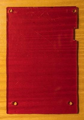 V dolním krytu je potřeba vyříznout otvor pro napájecí USB konektor. Mohlo by být užitečné vyříznout otvor i pro programovací ISP konektor (používá se i pro připojení periferií).
