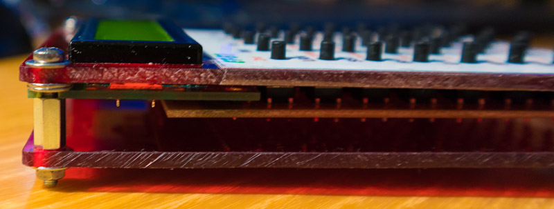 Desky jsou sendvičově sešroubovány pomocí distančních sloupků.