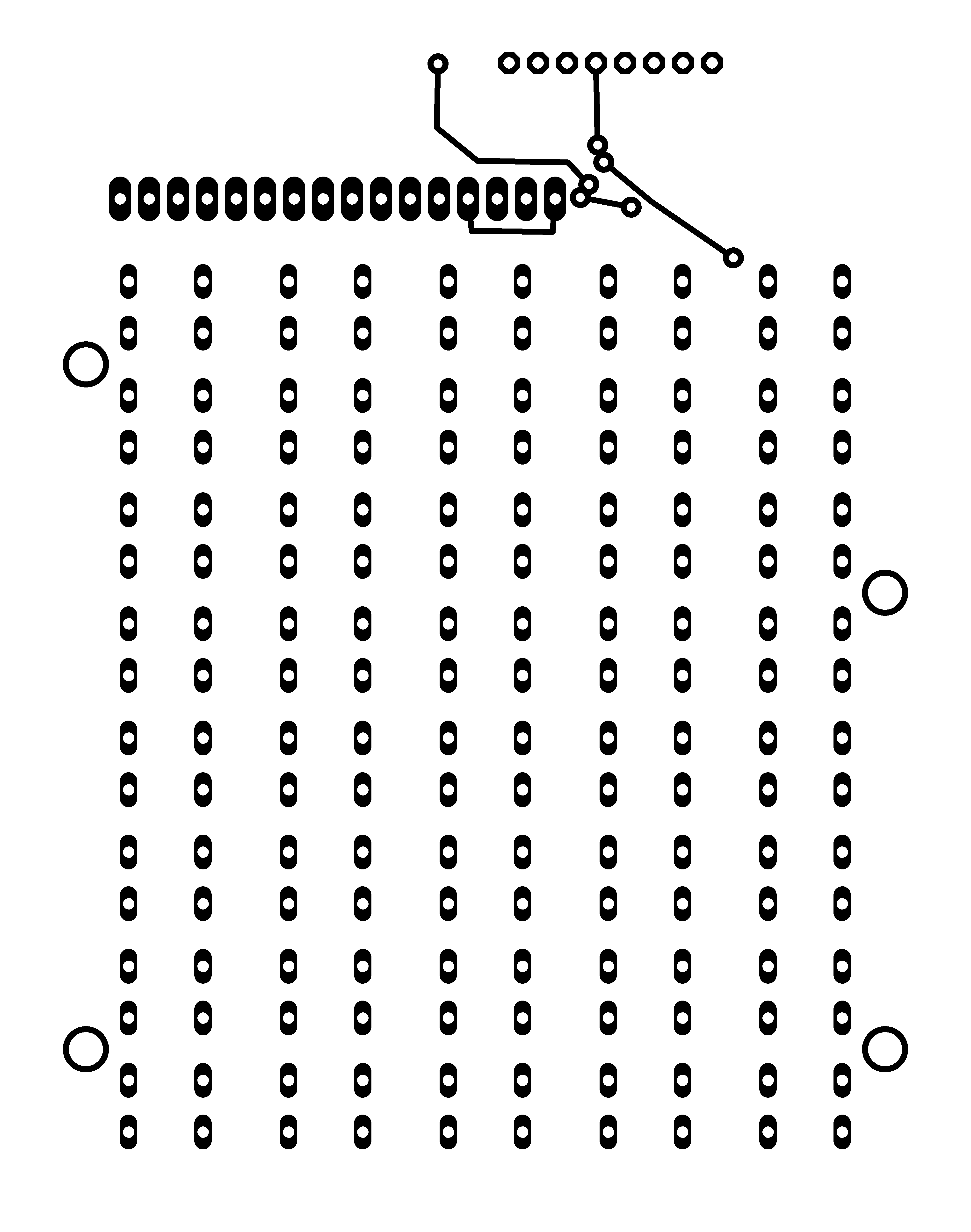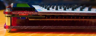 Při osazování propojky k pinu 8 konektoru ISP pozor, mohla by se dotýkat krycího plechu displeje. Je proto vedena obloukem. Displej je přiletován přes pinovou lištu. Před přiletováním piny u displeje zamáčkněte shora dolů (na doraz), aby nepřekážely krytu. Programovací konektor ISP jsem sice přiletoval ze strany displeje, ale může být praktičtější přiletování ze strany plošných spojů, protože displej konektoru trochu překáží.