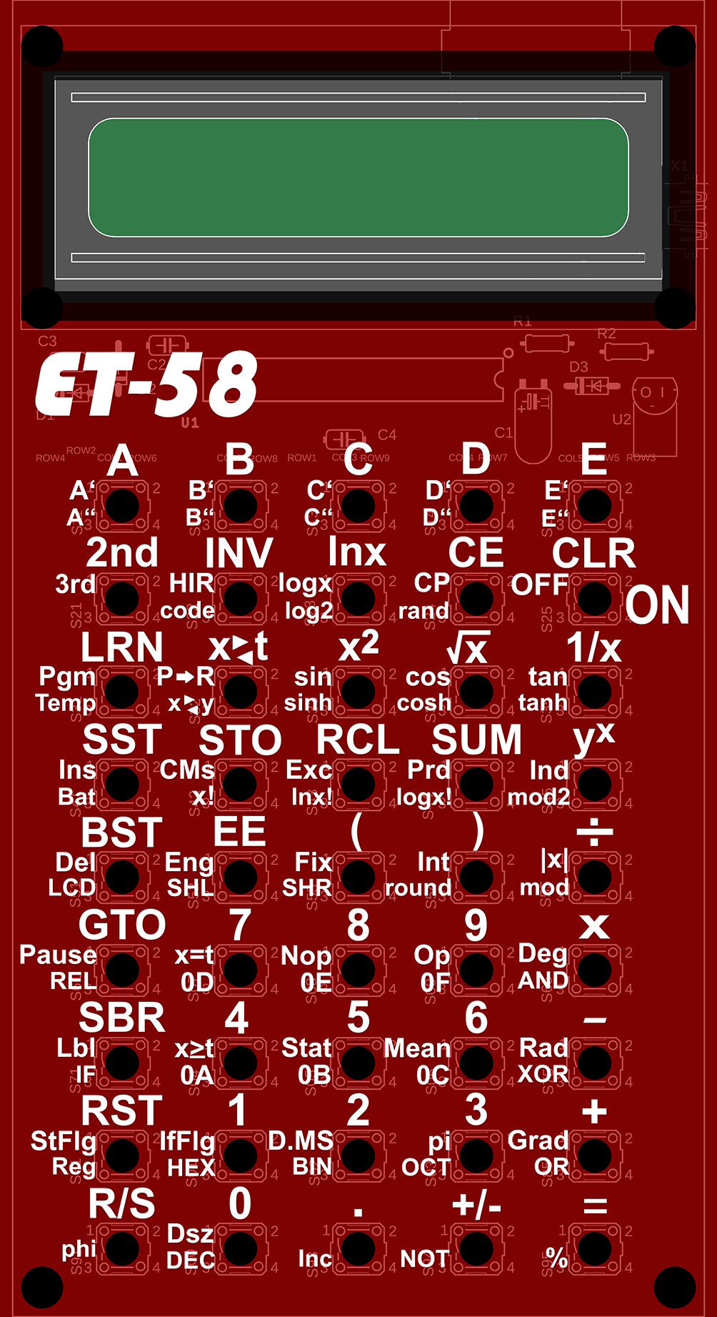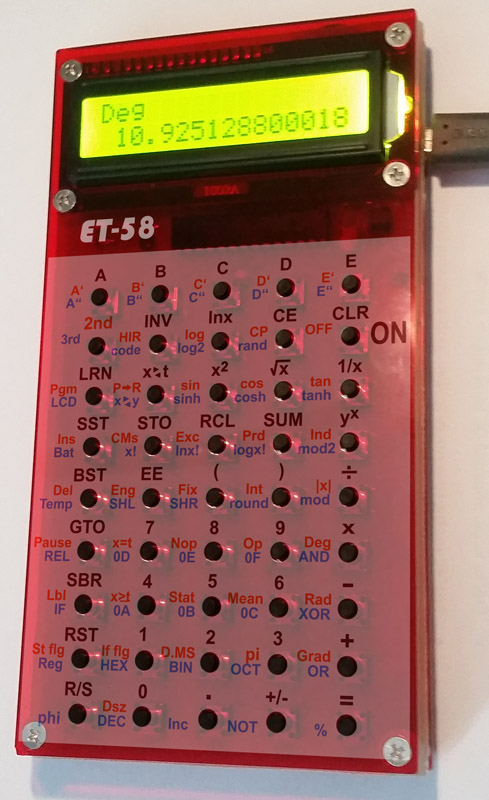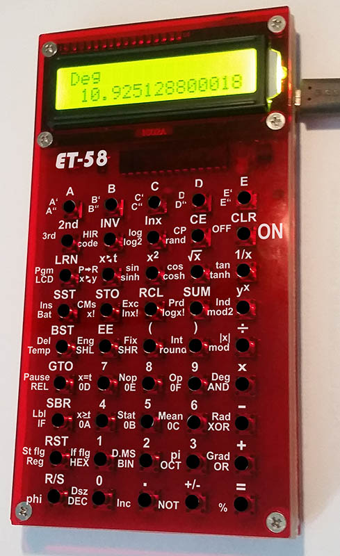 Kalkulátor ET-58 je klon programovatelného kalkulátoru TI-58/TI-59 firmy Texas Instruments, s procesorem ATmega328P a s rozšířenými funkcemi. Zdrojové kódy kalkulátoru jsou volně k dispozici. V kalkulátoru lze použít též firmware kalkulátoru ET-57 (pro procesor ATmega88), se kterým tento kalkulátor bude fungovat jako klon kalkulačky TI-57.