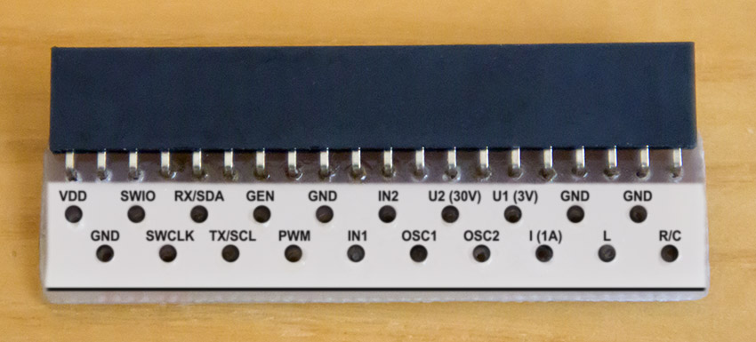 4 SWCLK ... Hodinový programovací vstup. Lze využít k programování procesoru v režimu 2 vodičů. Není ovšem nutné používat, procesor umožňuje programování i v režimu 1 vodiče. Interně je současně tento signál využit k řízení rezistoru R4 při měření rezistorů a kondenzátorů. Z toho důvodu nelze procesor programovat v případě, když je zvolená stránka pro měření rezistorů nebo kondenzátorů.