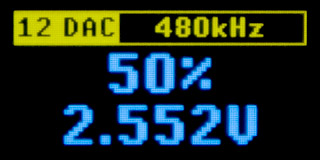 Třetí možnost, 50 Hz, je vhodná např. k řízení stmívačů nebo k regulaci LED osvětlení. Další možností využití je test serv RC modelů. Při frekvenci 50 Hz je perioda signálu 20ms. Neutrální polohu serva 1.5ms obdržíte nastavením DAC na 7 nebo 8%. První krajní polohu serva, 0.5 až 1ms, nastavíte jako 2 až 5%. Druhou krajní polohu serva, 2 až 2.5ms, získáte při nastavení na 10 až 13%.