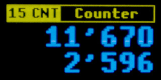 15 CNT Counter - čítač. Čítač počítá vzestupné hrany digitálního signálu přivedeného na vstup "10 IN1". Lze čítat pulsy signálu s frekvencí až do 24 MHz. Počítání pulzů probíhá na horním řádku displeje. Tlačítkem SLOW se zaznamená aktuální stav čítače do dolního řádku. Tlačítkem FAST se dočasně pozastaví aktualizace údaje v horním řádku, aby bylo možné údaj snáze přečíst. Čítač mezitím počítá dále. Aktualizace displeje se obnoví novým stiskem lačítka FAST. Tlačítkem HOLD se čítač i zobrazené údaje vynulují.