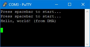 dma_hello_uart, dma_hello_usb ... Copy data between 2 buffers using DMA.