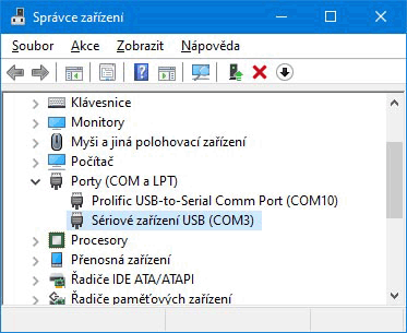 After connecting the adapter, a new COM port, "Prolific USB-to-Serial Comm Port", will appear in the device manager. Connect it to begPuTTY in the same way as a USB virtual COM port, except that in the Serial setting, select Flow control = None.