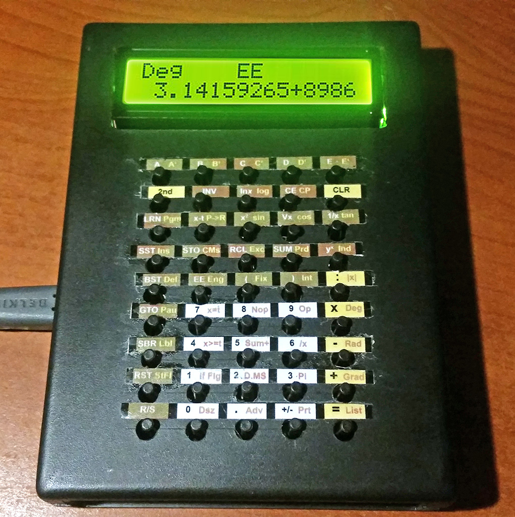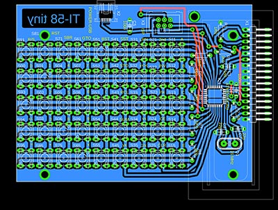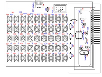 Původně šlo o pokus, zda by se nedala naprogramovat velmi jednoduchá replika kalkulátoru TI58 do novějšího typu procesoru, ATmega8. Paměti RAM, ROM i EEPROM má tak akorát na takový úkol. Neřešil jsem proto mechanickou stránku - s tím že když se software povede, tak pak se věnuji i konstrukci. Z důvodu maximální šetrnosti kódu byl firmware programován v assembleru, s využitím optimalizací z počítače ZX Spectrum (makro jazyk). Práce šla hezky a podařilo se dosáhnout zajímavých výsledků. Bohužel v 90% práce začala docházet paměť ROM a začalo být zřejmé, že kód se celý do ROM nevejde. Navíc kód díky assembleru začal být už dost nepřehledný a začal jsem se ztrácet. Tedy jsem to nakonec vzdal, přestože moc nechybělo. Použít vyšší, větší procesor - to by už ztrácelo tu pointu. Je to škoda, protože je hotová už většina firmware, tak možná se k projektu někdy vrátím, ale spíš se budu dál věnovat jinému kalkulátoru s podstatně větším procesorem programovaném v C.