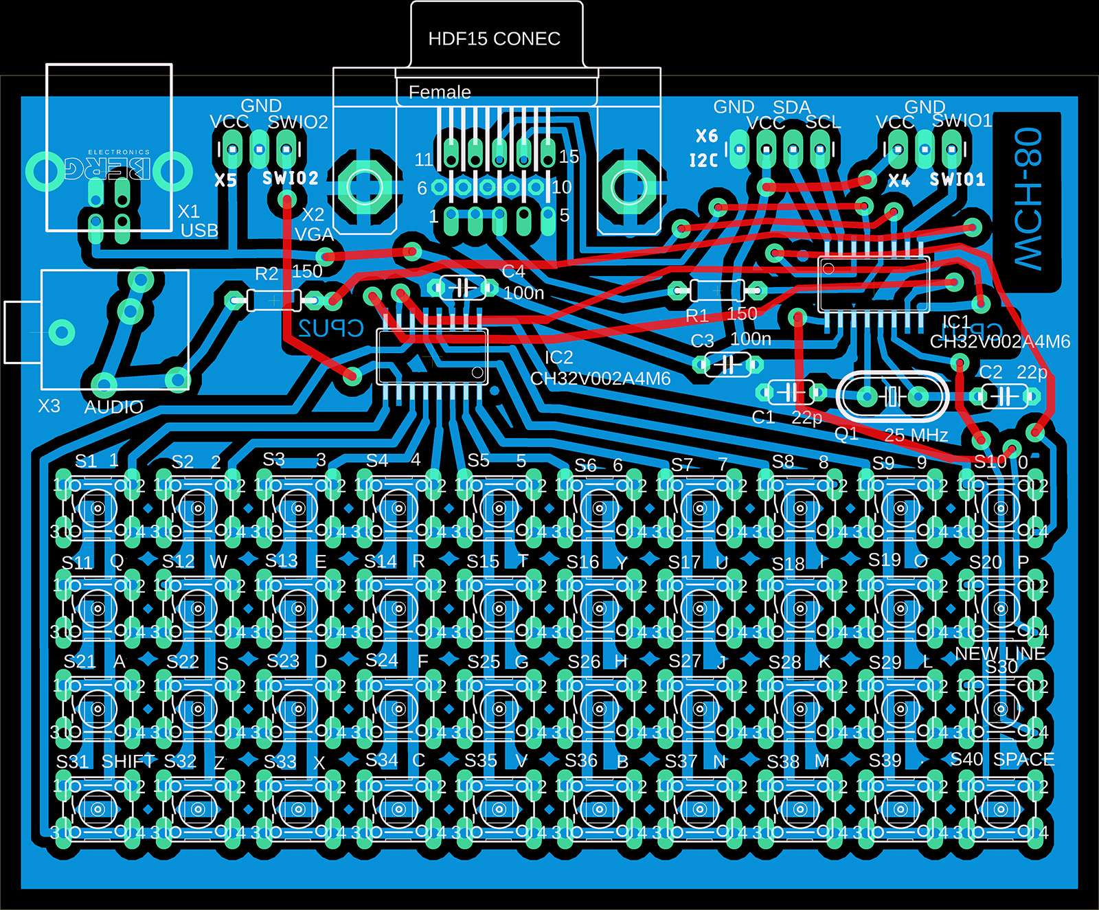 WCH80 obsahuje dva procesory CH32V002A4M6.