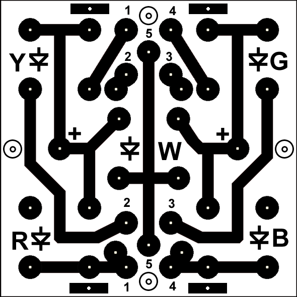 PCB: Because I use the freeware version of Eagle, PCBs are limited to 10x15 cm. Fortunately, this is not directly a limitation of the resulting PCB, but a limitation of the allowed solder spacing. Therefore, the PCB goes even a little "beyond the corner" of the allowed dimension. 64 pieces of the segmented PCB were needed. That's why I printed out an A4 sized template - but I still ended up making it in smaller parts, I wouldn't even light a PCB that big. The holes indicated were where I thought I'd run the wires through to secure them, but that was an impractical idea.