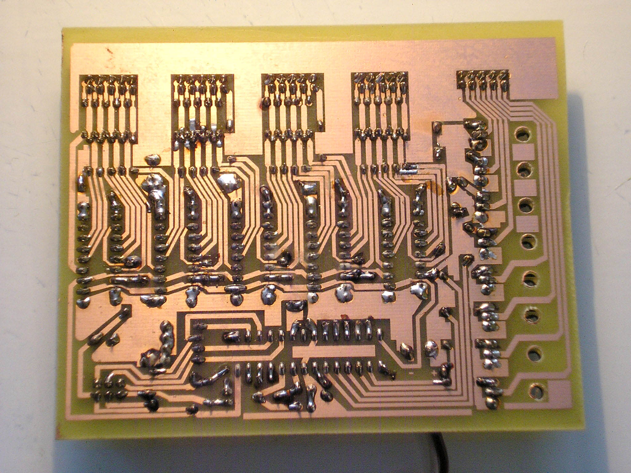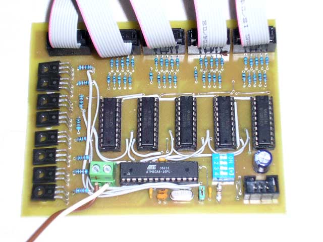 Fitting: I did not avoid some wire jumpers when designing the PCB. But I tried to design in such a way that the jumpers could be replaced by the other side of the double-sided PCB. As I mentioned before, transistors do not heat up and therefore can be placed directly on the PCB (without cooling). The shift registers should be in sockets - it can be assumed that some electrostatics will break through the output and some circuit will need to be replaced (that's why I didn't consider SMD). The resistors on the outputs of the shift registers must be power. I don't have a PCB segment fitting (I didn't do it in Eagle), but you can certainly recognize that.